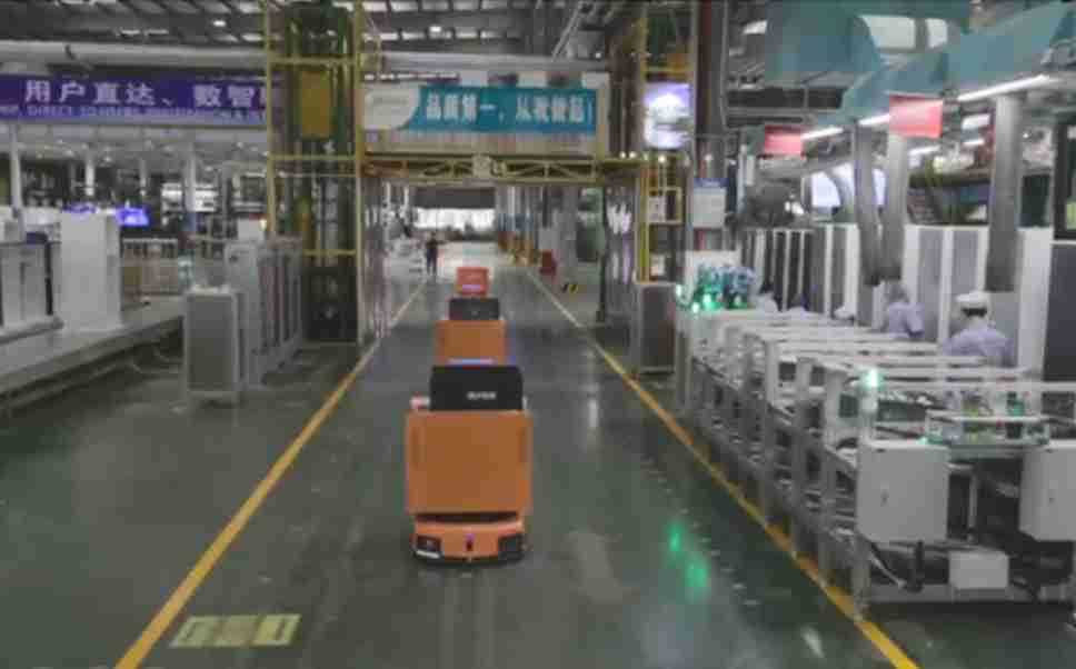 为车载冰箱物流配送打造的智能解决方案,,,包含产中物流通过潜伏举升AMR搬运至线边,,,产后成品物流智能仓储,,流程包含产中物流智能齐套入库,,,,线边安灯叫料AMR智能配送至线边,,,成品入库、、出库,,,通过无人堆高车机器人,,,,智能仓储管理替代人工作业管理,,,,实现更高存储、、、、更高效率、、、更具柔性化的解决方案。。